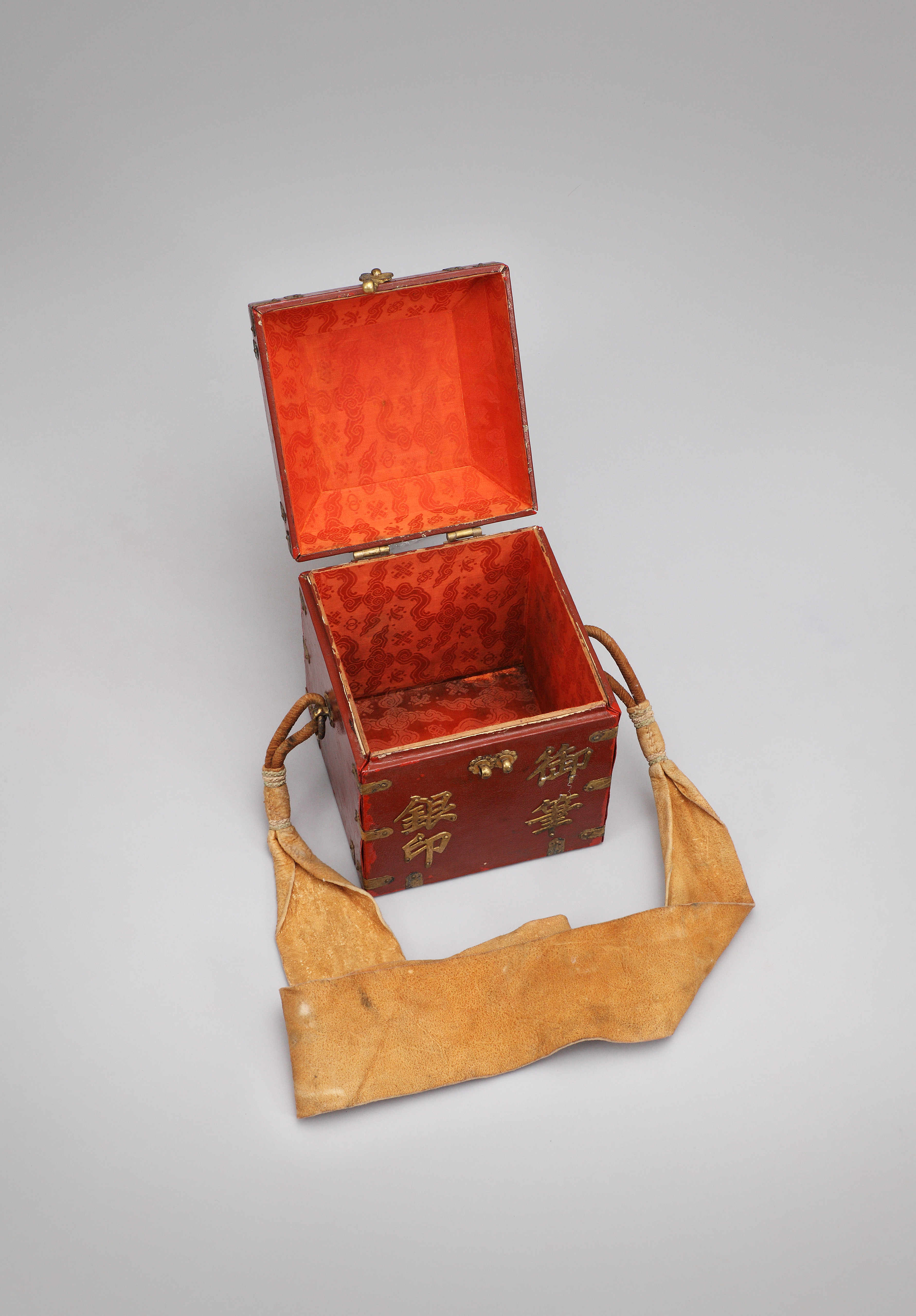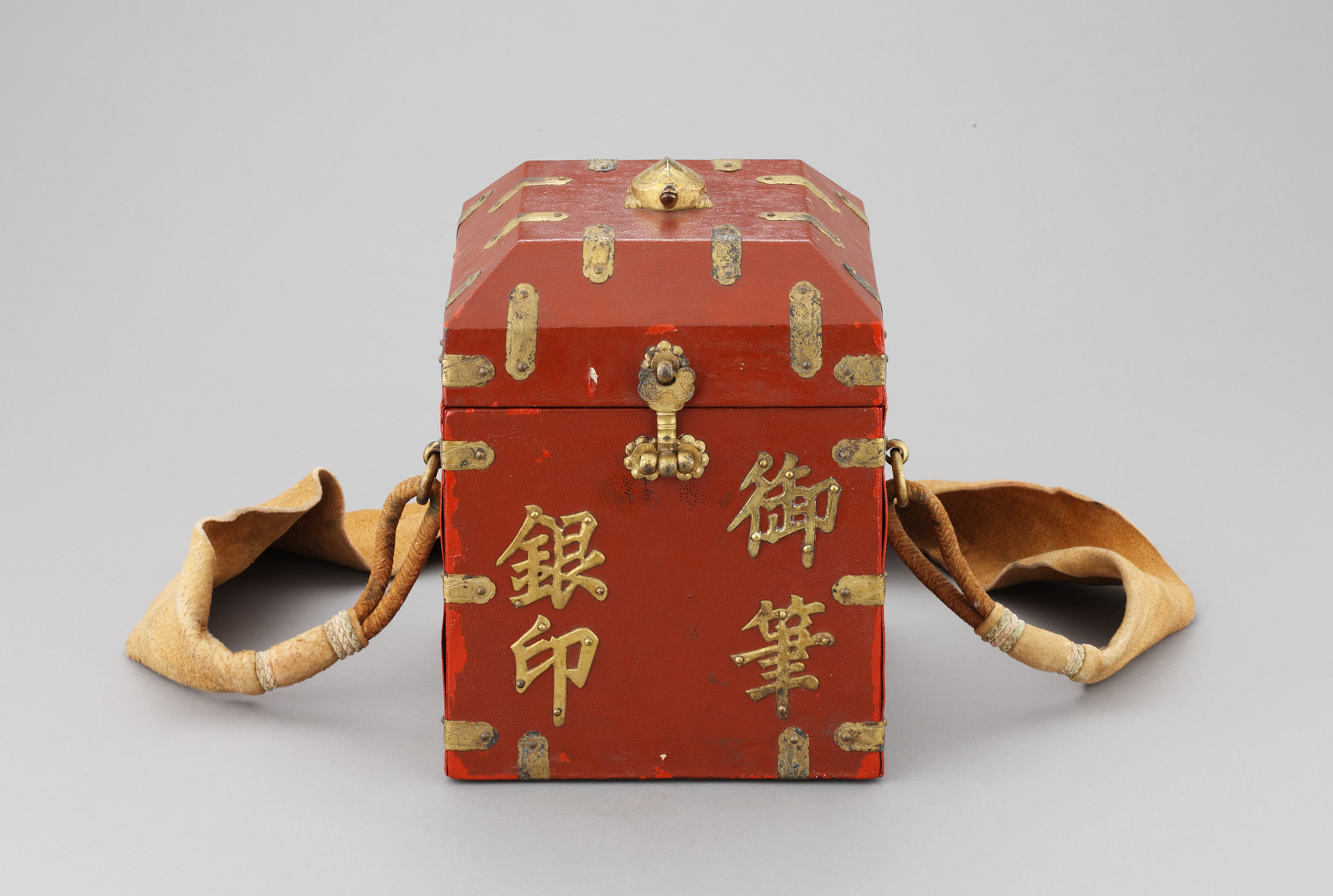 While the red case is not different from other ones in that it has a turtle on top and handles on both sides, the two Chinese characters “御筆”, (‘eopil’ meaning “calligraphy of a king”) and “銀印” (‘eunin’ meaning a silver seal) inscribed on its front distinguish it from the other cases.