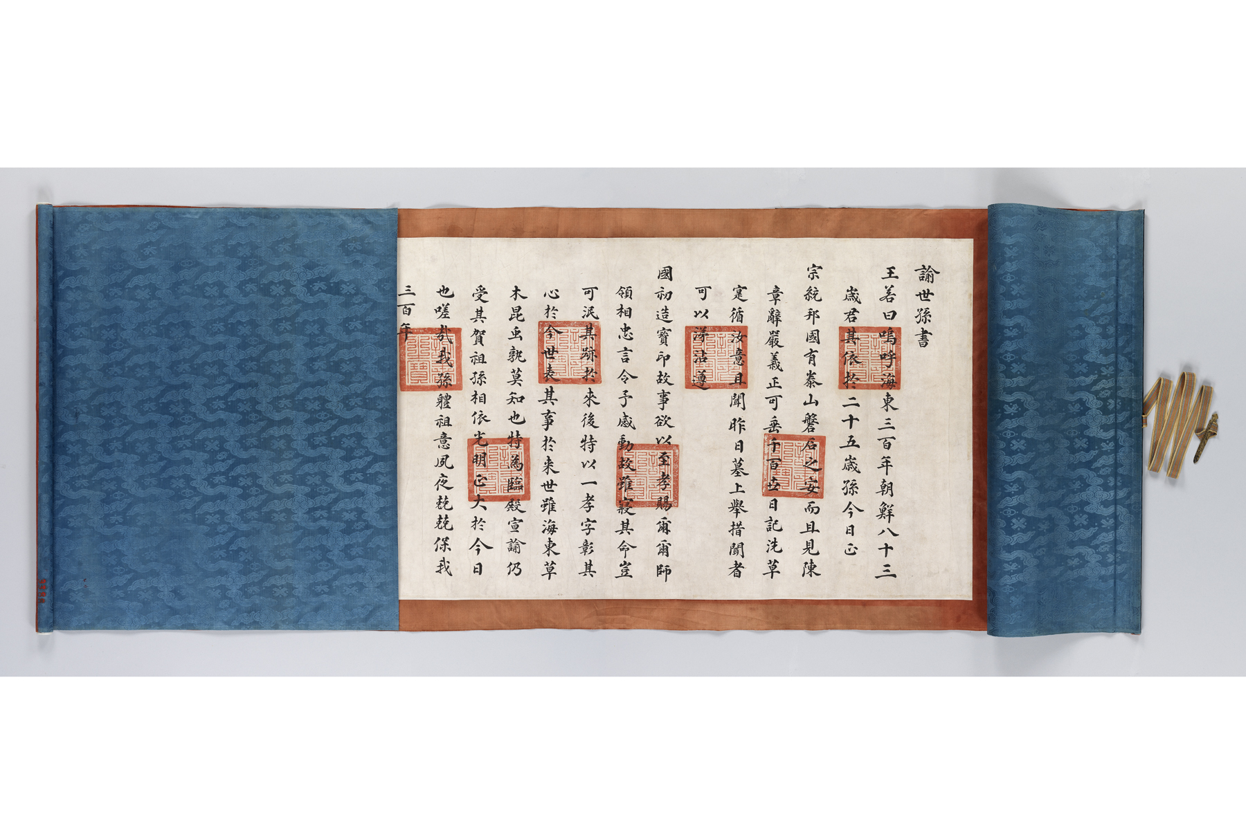 In the royal instruction given along with the seal, King Yeongjo sincerely hoped that his grandson’s filial piety be acknowledged eternally, and also conveyed his strong trust in the crown prince. On its tubular case, it reads, “御製諭書” (‘eojeyuseo’ meaning “an instruction written by a king”).